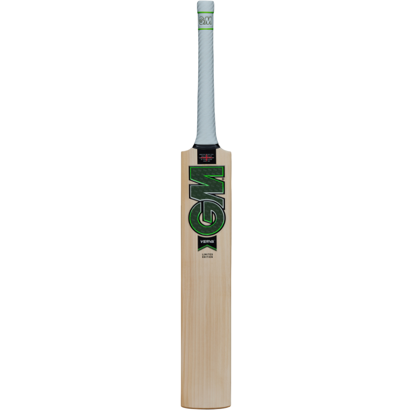 An English Willow cricket bat with an F2 face, a full convex profile and a low swell position for attacking power-play off the front foot. With its distinct, imposing toe profile and edge size, you will ooze confidence in striking the ball beyond the boundary with your Verva. The distinct GM powerarc bow face profile adds to the dominance you will feel as you take on the opposition's bowlers.